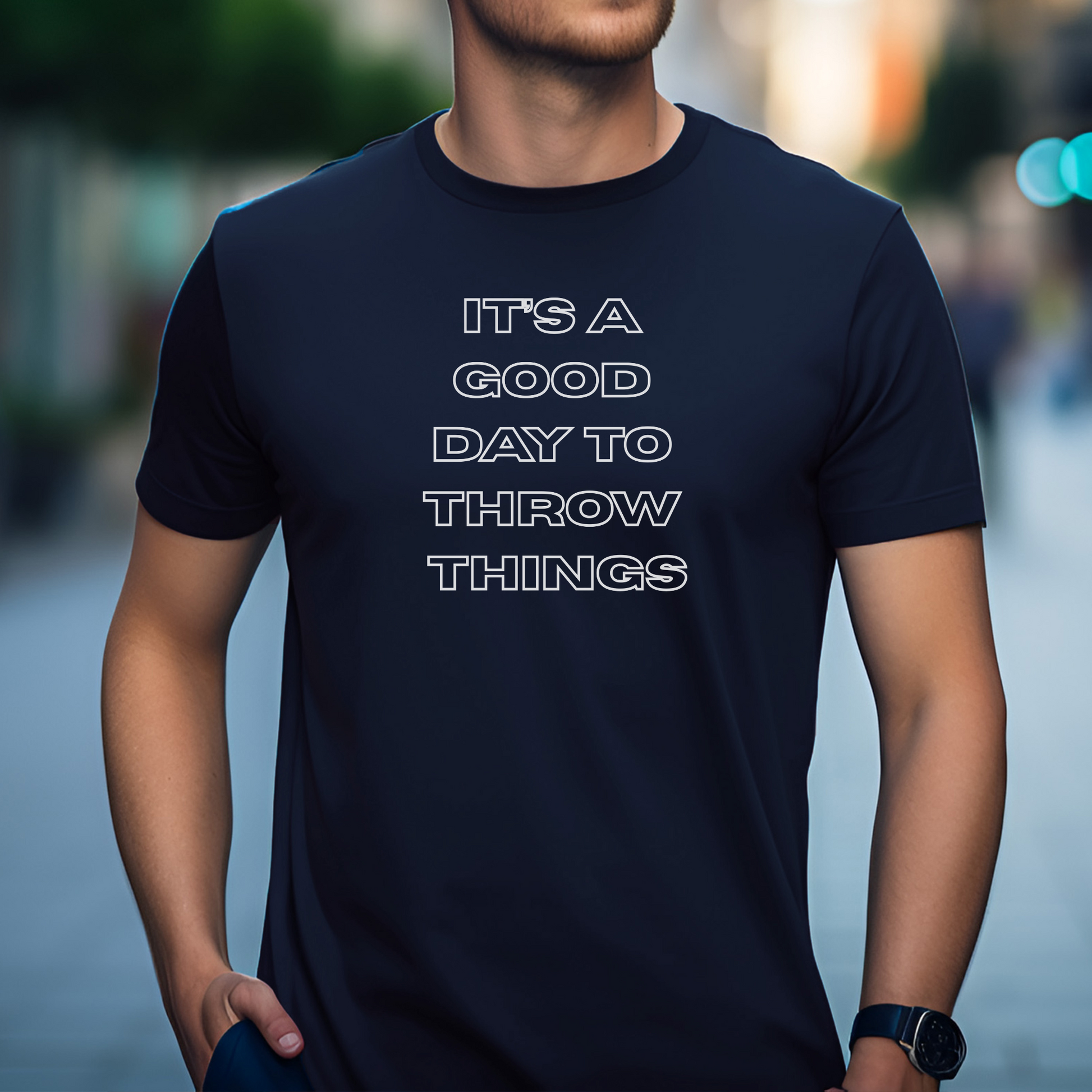 Premium Unisex Crewneck T-shirt | Navy Throw Things (on front)